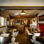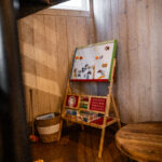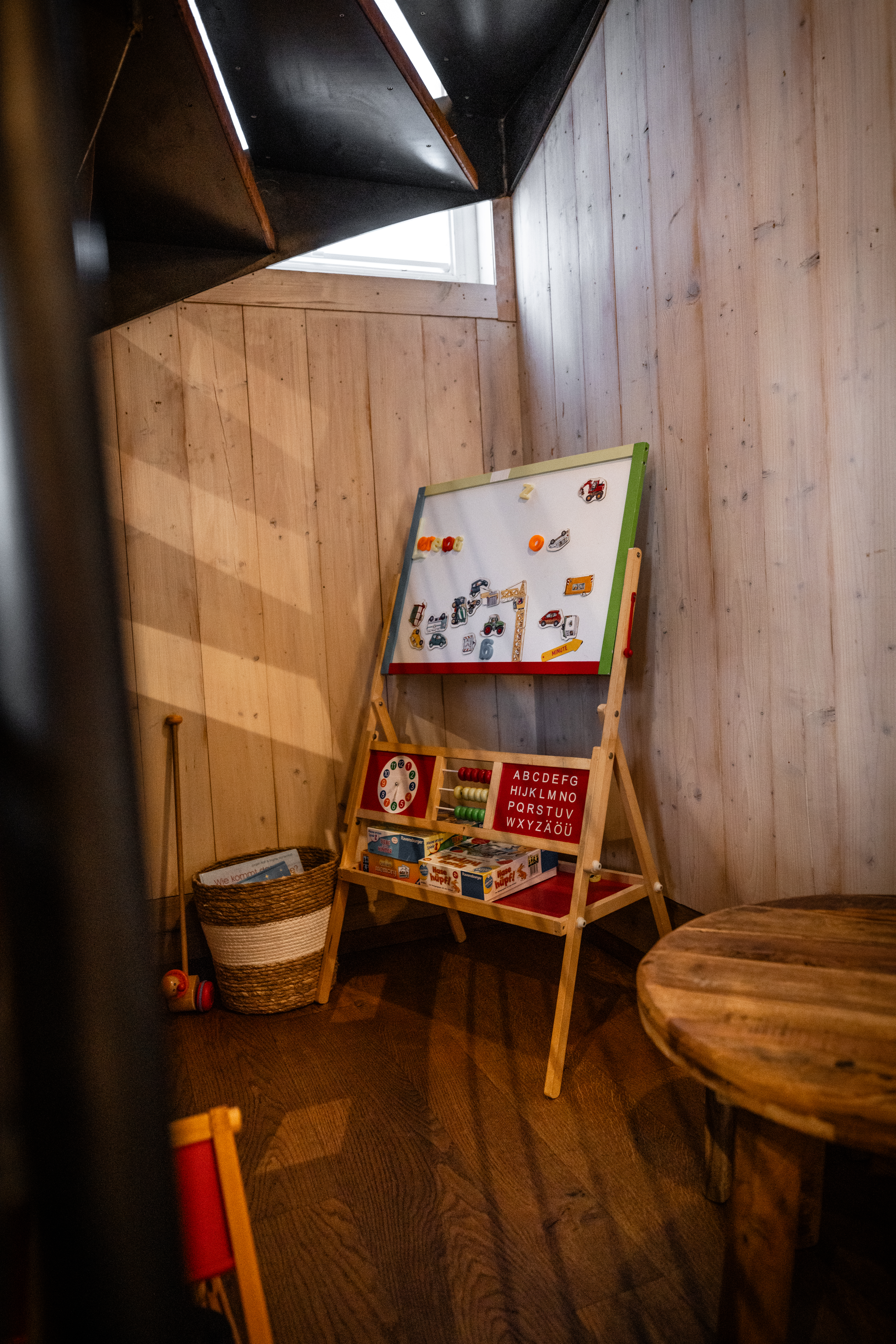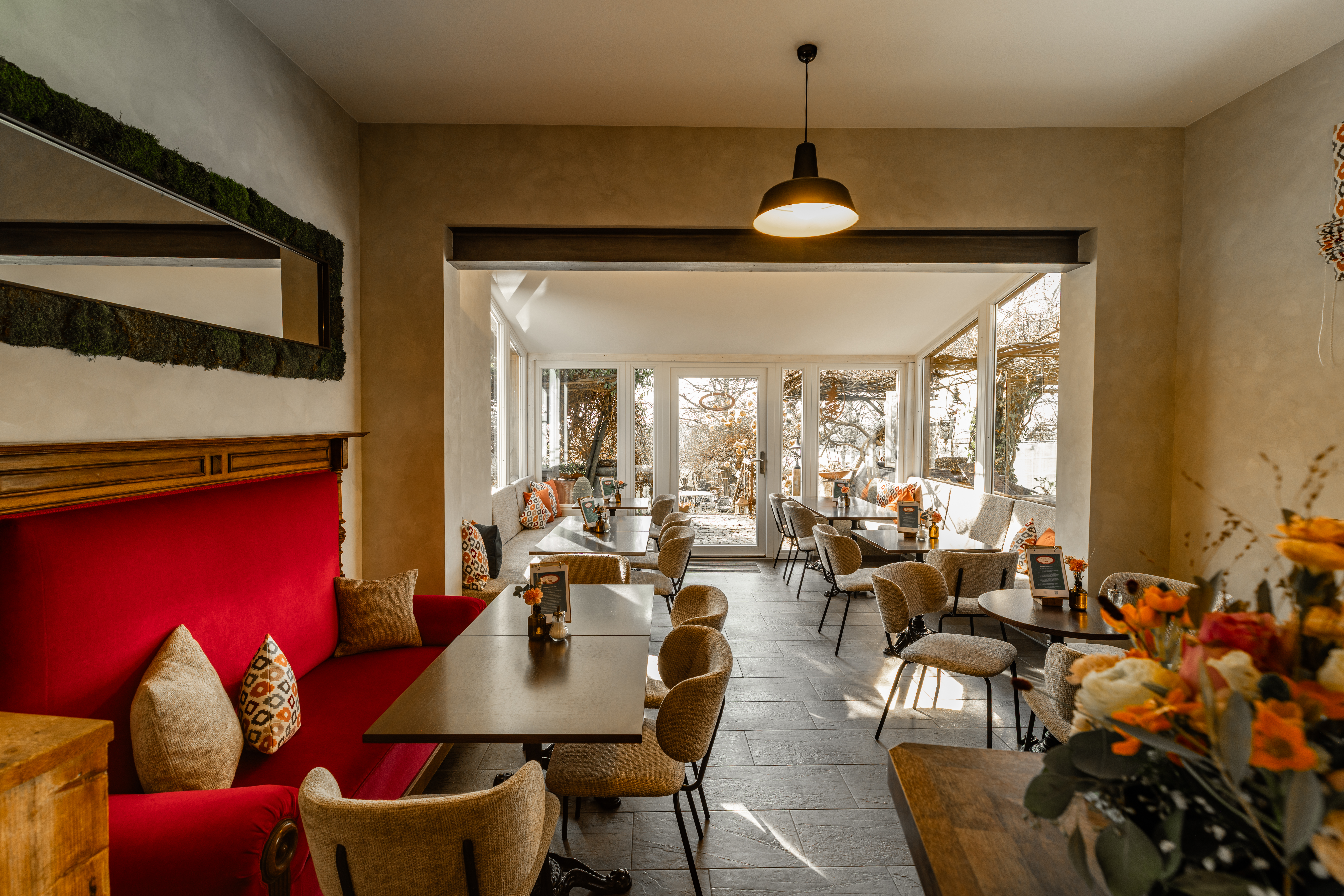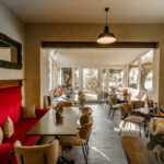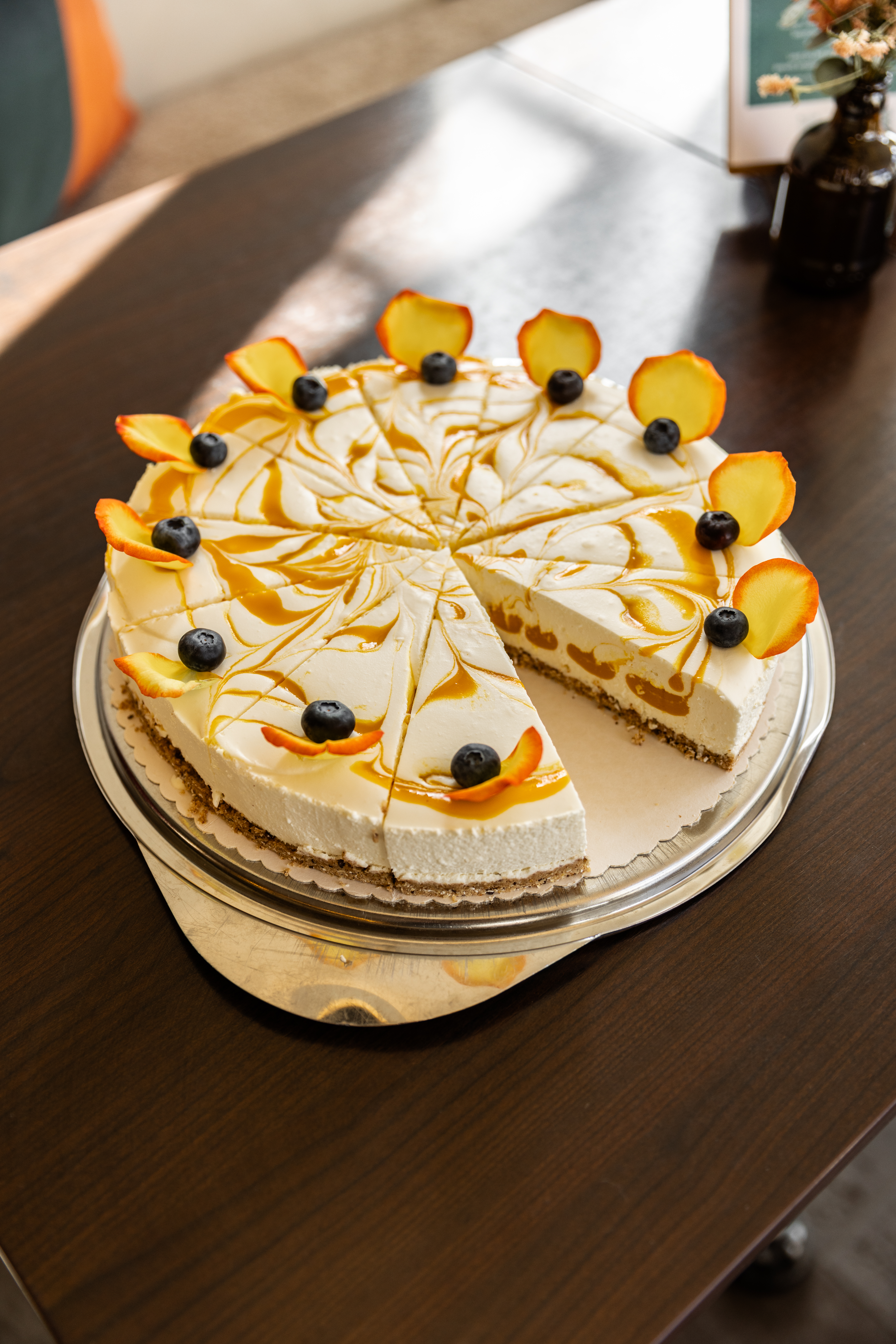 Impressionen Innenraum Theke unten Innenraum Café unten Obergeschoss Café Obergeschloss Café mit neu gestaltetem Giebel Eingangsbereich Café Kinderspielecke Kokos-Mangotorte